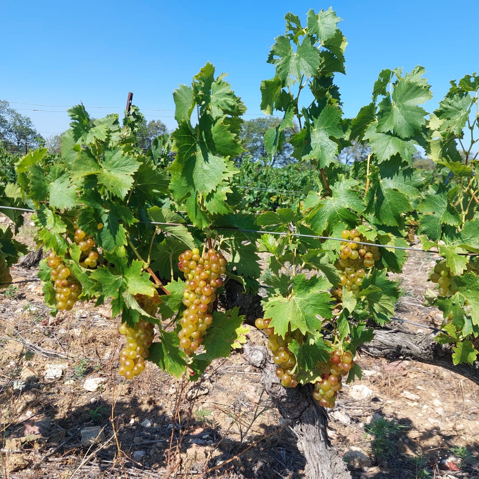 Deux hectares de grenache blanc et gris en gobelets sur la commune de Ponteilla. Vignes plantées en 1948 et 1952.