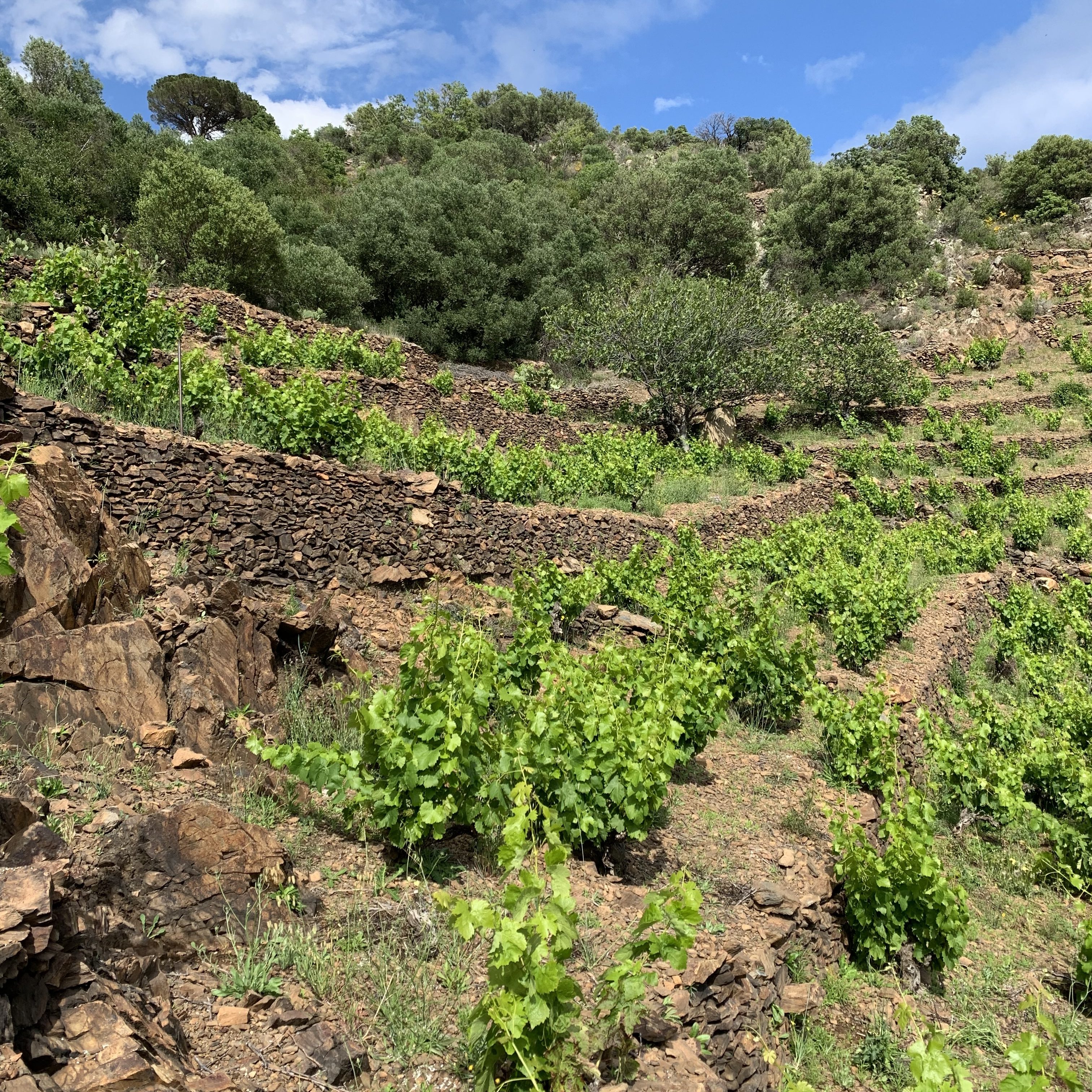 50 ares sur la commune de Banyuls, grenache noir en gobelets planté en 1940.